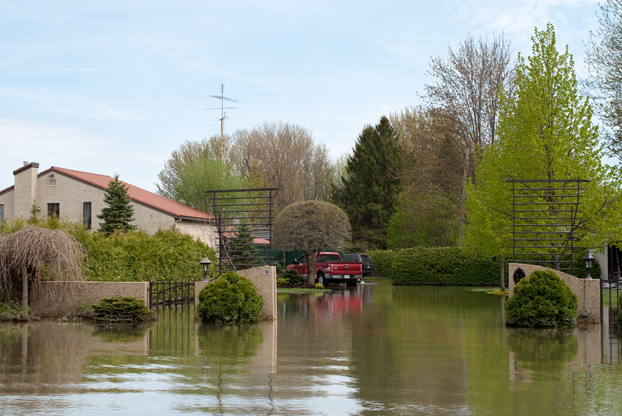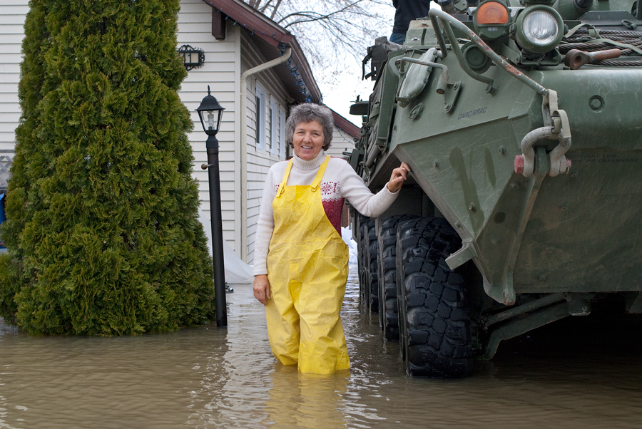 Avril 2011. Dans la province de Québec, au Canada, la fonte des neiges du printemps combinée à de fortes pluies pousse la rivière Richelieu à sortir de son lit et le lac Champlain à inonder ses berges. Avec, plus de 50 millions de pertes aux infrastructures, ce seront les pires inondations à survenir dans cette région depuis 150 ans. Avec cette série, j'ai voulu mettre de l'avant certains paradoxes: celui de l'étrange beauté de l'inondation dans l'environnement humain; celui des humains pour qui le quotidien devait continuer au coeur du sinistre; celui de l'eau, ressource que l'on contrôle dans la vie de tous les jours, censée être le symbole de la vie, soudainement incontrôlable, envahissante et transformée en force destructrice. (2011)